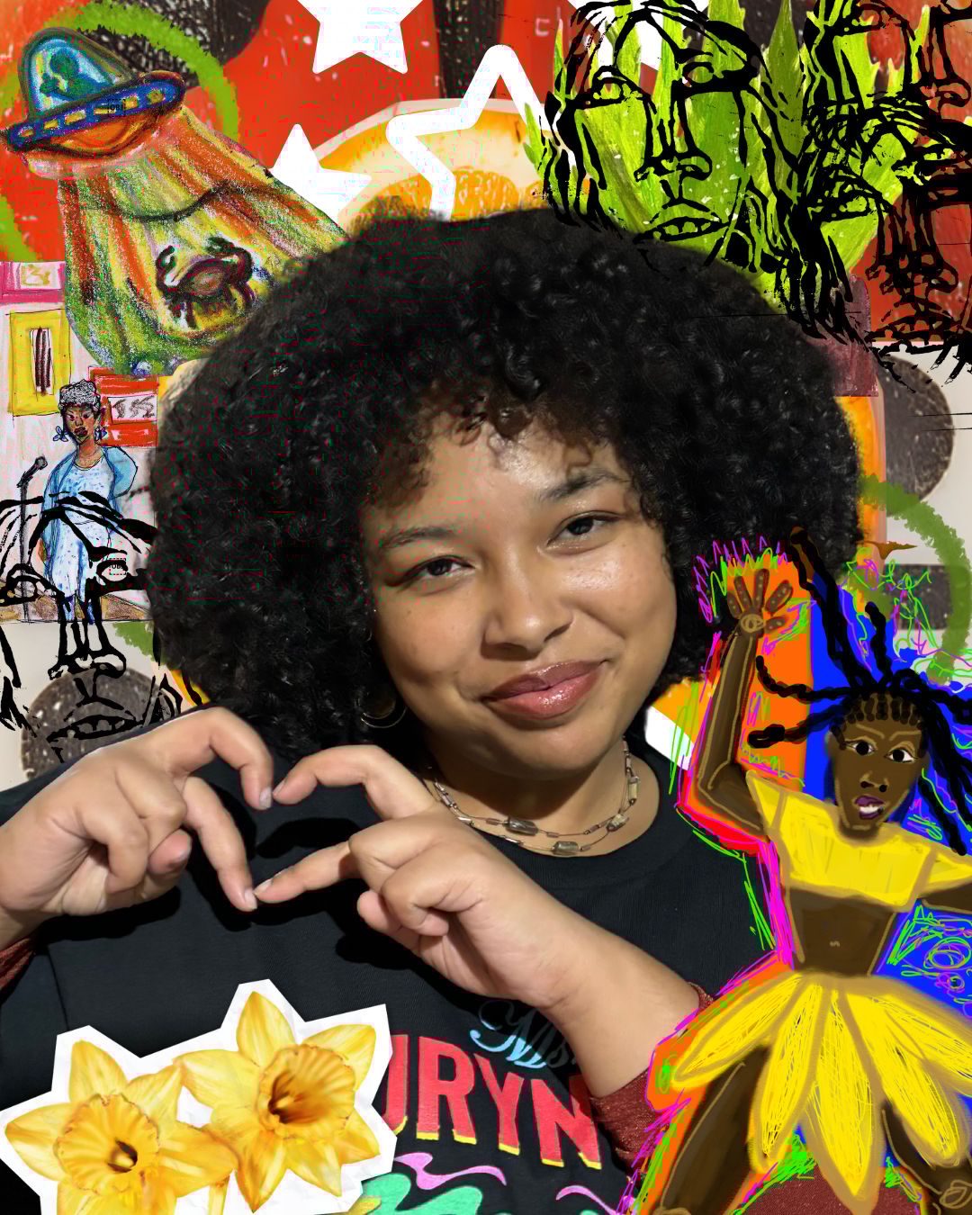 I am inspired by my Afro-Carribean culture, my East New York community, and pop culture. I primarily paint with femmes at the focus of my art. I tend to use bright colors in my artworks and folklore inspired imagery. If I were to pick artists that came before me that inspire me; they would be: Faith Ringold, William Henry Johnson, Rafael Hernandez, Henri Matisse, Erykah Badu & so much more ! I hope to continue being inspired and sharing with you through my creative talents. Whether it be painting, singing,rapping, upcycling, or jewelry/charm making…time will continue to be decorated by me in my own special way.